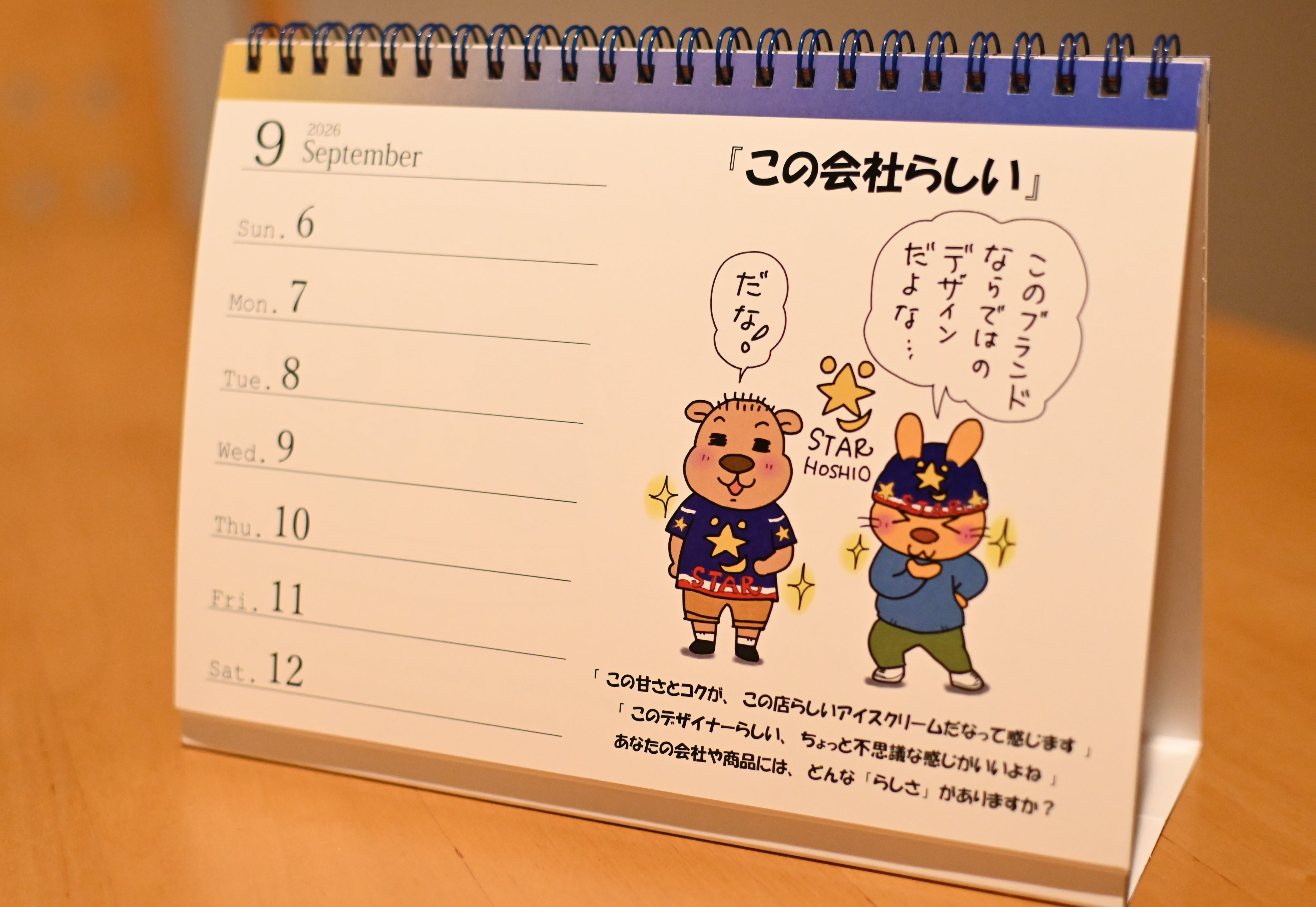 めくるたびに商品紹介のヒントと出会える、書き込みにも便利な週めくりカレンダーです。